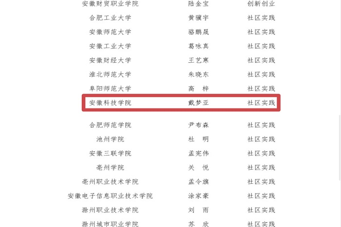 近日,安徽学联公布了2023-2024年度“安徽省大学生自强之星”奖学金获得者名单,我校资源与环境学院研究生戴梦亚获此殊荣。