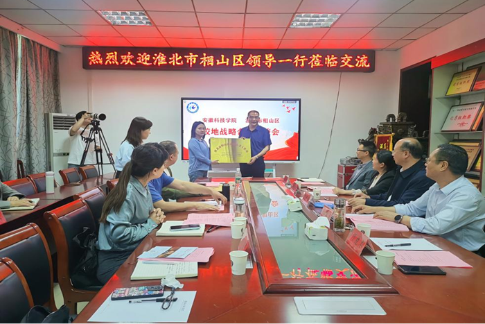 会上,我校与相山区委组织部举行了“相山区高校人才工作站”授牌仪式,并与相山区人社局签订了校地就业合作协议。食品工程学院副院长翟立公、生命与健康科学学院党委副书记彭丽萍分别介绍了学院科研、毕业生就业工作等相关情况。与会人员共同观看了相山区人才招引宣传片,相关企业代表、教师展开了深入交流。