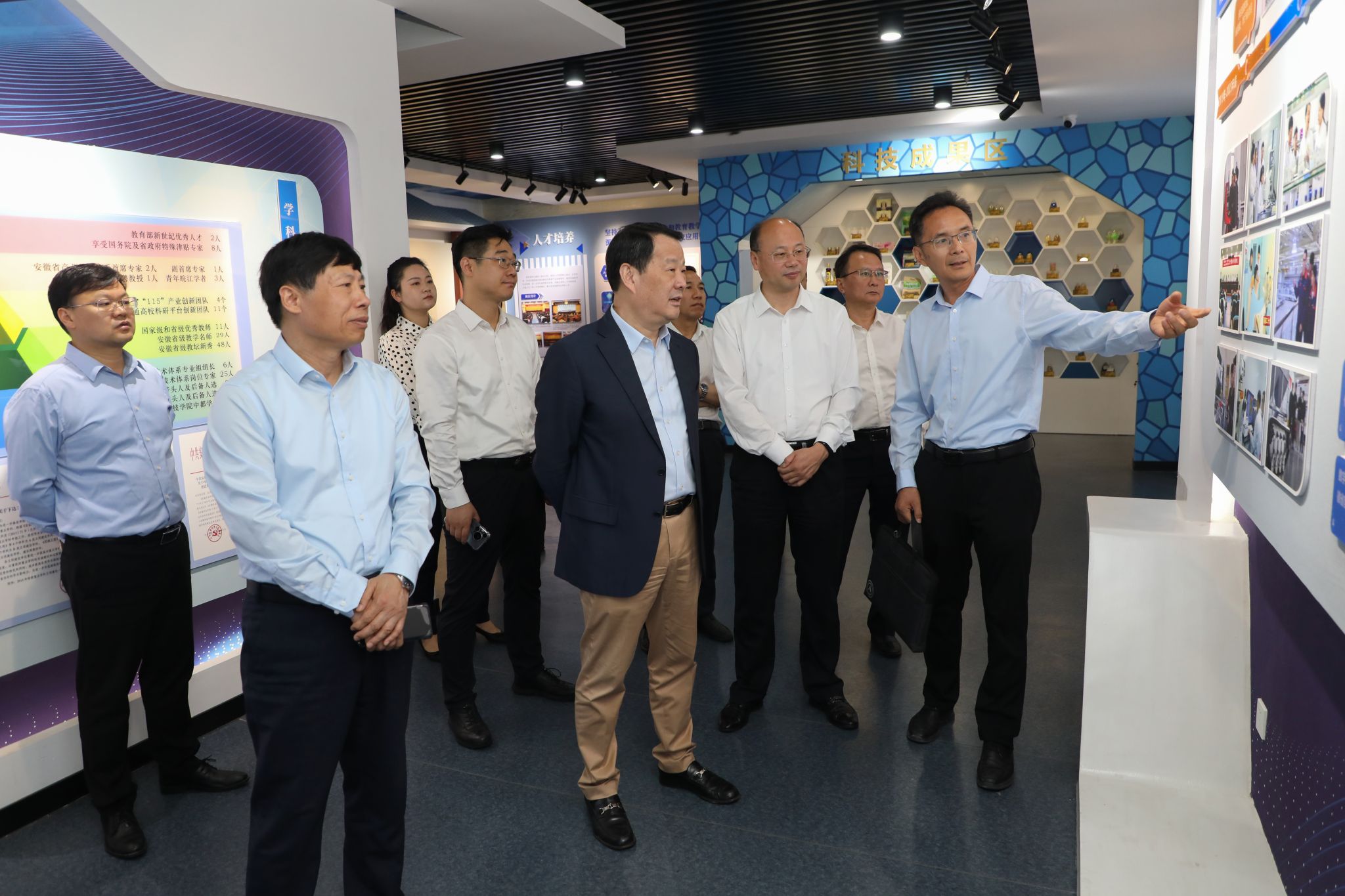 座谈会前,彭寿一行来到校史馆和特性玻璃与硅基绿色能源材料协同创新中心,详细了解学校学科建设、专业设置、人才培养和“产学研用”融合发展等方面情况。(特约通讯员:王钊 摄影:陈宝 审核:卢星辰 胡文靖 编辑:李锦)