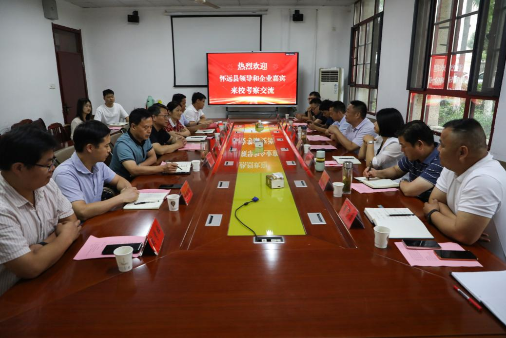 7月2日下午,怀远县人大常委会主任王五洲、怀远县副县长常春梅率县经开区、县科技局、县农业农村局、县人社局负责同志以及安徽博宠宠物用品公司董事长丁周守力、市场部经理周发展等,来校考察交流政产学研用合作事宜。校党委委员、副院长李升和,科研处处长陈丰,蚌埠市人大常委会委员、民进华体会官方网站_乐华体会(中国)股份有限公司,主委张菊,动物科学学院党委委员、副院长贺绍君,食品工程学院副院长郑海波等出席会议,会议由动物科学学院党委书记、副院长程斌主持。