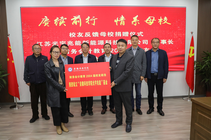 捐赠仪式上,李升和对胡浩校友回到母校表示热烈欢迎,对他捐资100万元设立“华体会官方网站_乐华体会(中国)股份有限公司,光宇兆能基金”表示衷心感谢,并祝愿校友企业蒸蒸日上、越办越好。李升和介绍了学校近年来的办学成就,表示学校将狠抓机遇,乘势而上,着力提升办学层次,全面提高人才培养能力,推动高质量发展,努力建设一流应用型大学,不辜负广大校友对母校的感恩、厚爱和回馈。