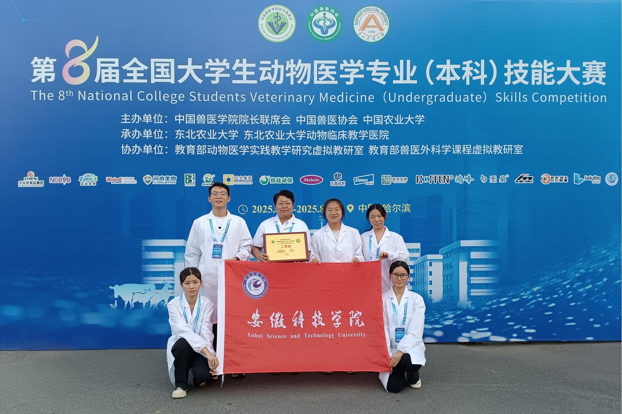 8月19日至20日,第八届动物医学专业(本科)技能大赛在东北农业大学举行。我校代表队荣获大赛团体二等奖。动物科学学院贺绍君、李静、丁金雪、赵磊、马飞洋荣获优秀指导教师二等奖。李静受邀担任禽的病理剖检竞赛项目组裁判。