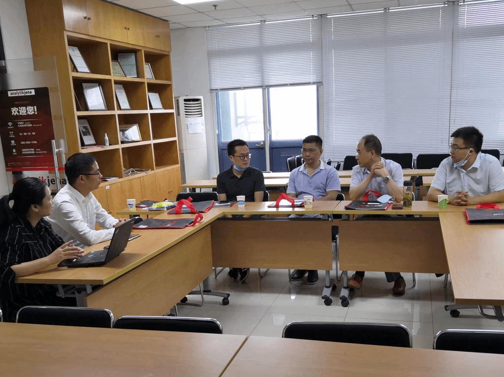 在德国耶拿公司总部,陈君华一行听取了耶拿销售工程师顾建伟、技术支持工程师王樾慜对公司最新全波段连续光源固体进样原子吸收光谱仪的详细介绍并和工程师深入讨论了固体进样原子吸收光谱仪的样品前处理过程、固体进样量多少对检测结果影响以及与国家标准衔接等问题。