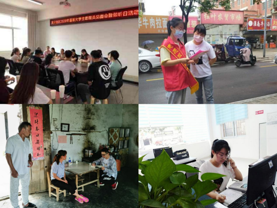 团队成员苏明璇参加了龙子湖区大学生返家乡暑期实践活动,在曹山街道担任助理员,并参与到街道工作和社会志愿服务中,为龙子湖区的建设贡献自己的青春力量。团队成员李鑫和朱克千则到当地的村委会参加扶贫工作,向当地村民宣传扶贫政策,深入了解他们的想法和诉求,与当地扶贫小组共同帮助贫困家庭,为决胜脱贫攻坚贡献自己的一份力量。