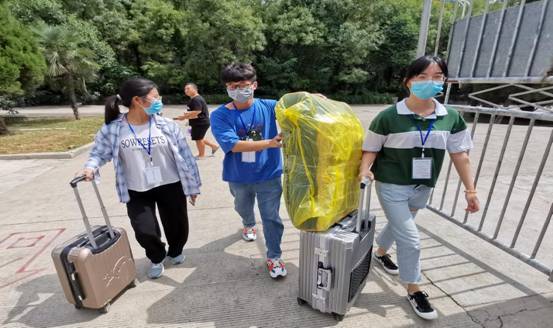 “我来帮你们拿行李吧!”志愿者们接过学生和家长手中的行李,也接下他们面对新环境的无措和不安。