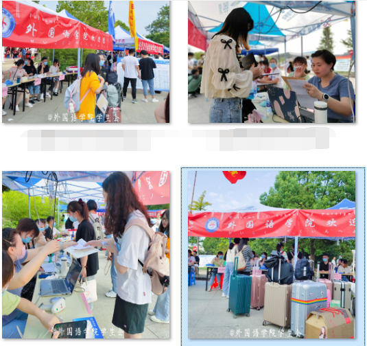 迎新工作在9月16号早晨正式拉开帷幕。九月的骄阳依然似火,但这丝毫不减外国语学院迎接新生的热情。热情的微笑,耐心的讲解,细致的引导,辛苦的行李搬运——这就是外国语学院迎新工作的关键词。班助、学长学姐们认真地为新生办理每一项入学手续,指引他们领取公寓用品,还有我们十分辛苦的学生会各部门同志们穿梭于迎新现场,来来往往为萌新们搬运大大小小的行李,安抚家长焦躁的心情,为迷茫的萌新们带路,时刻准备着为新同学伸出援手,直到他们脸上露出会心的笑容。