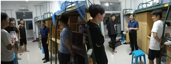 为深入了解新生入学适应状况,2020年9月16日晚,外国语学院院长陈德用、党总支书记蔡为青、外国语学院副院长刘萍在分团委书记陈慧中、专职辅导员宋兵兵陪同下深入学生宿舍,亲切地看望2020级新生。