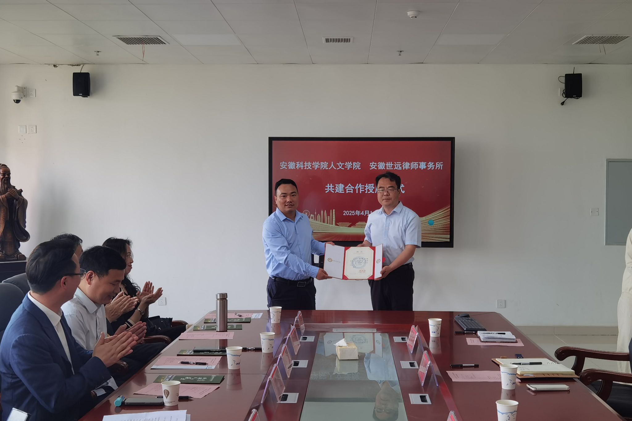 4月16日下午,人文学院与安徽世远律师事务所举行共建合作授牌仪式。安徽世远律师事务所执行主任段永梅,安徽世远(合肥)律师事务所主任程聪等一行,学院党委副书记、院长李晓东,副院长牛永辉,党委副书记李沙娜出席,学院部分教师代表参加。仪式由牛永辉主持。