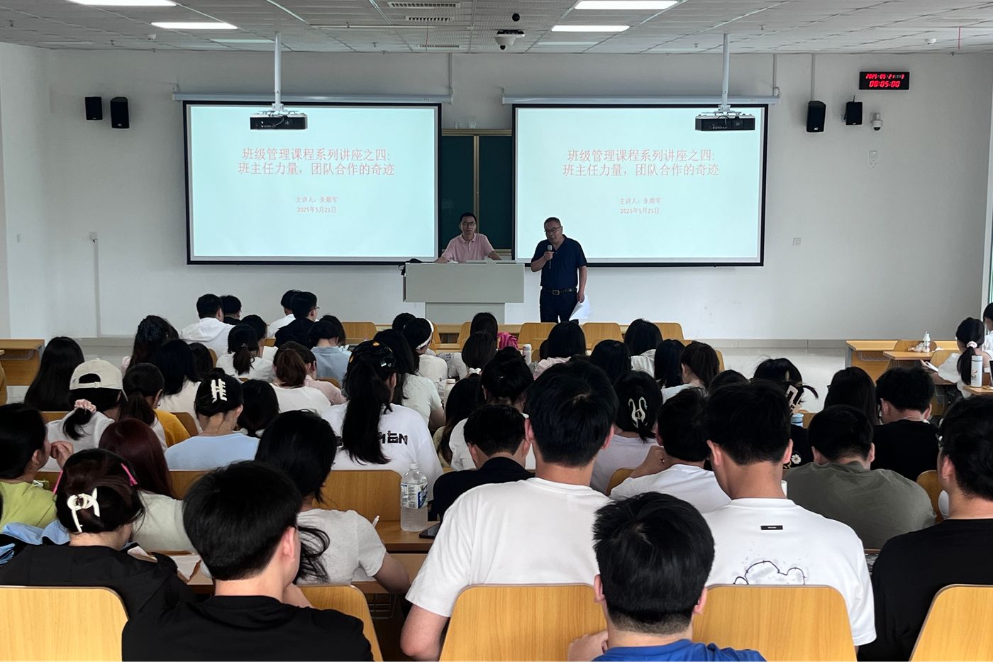 5月21日上午,人文学院邀请滁州市东坡中学高级教师朱顺军来校开展班级管理专题讲座。汉语言文学专业2022级学生参加,中文系主任苏兆龙主持讲座。