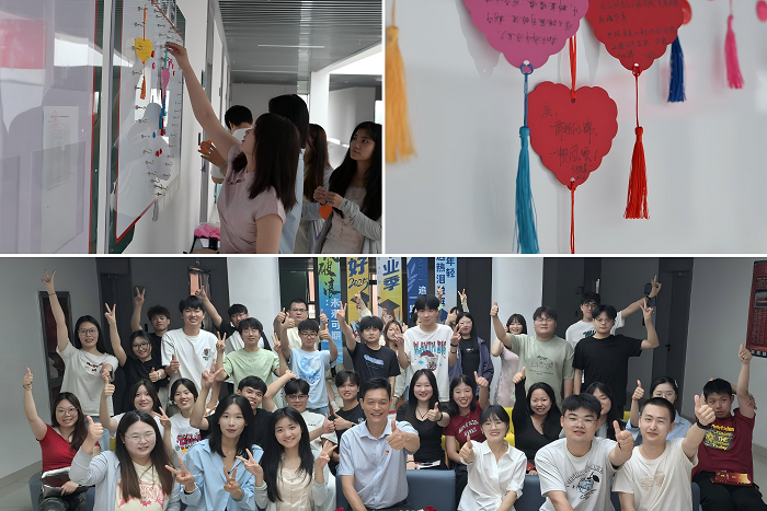活动中,付光玺为大家逐一发放政治生日贺卡,并带领大家一起重温了入党誓词。学院纪委副书记杨丽萍提醒各位毕业生党员,务必要守好廉洁底线,以一身正气勇敢追梦。毕业生党员代表深情回忆了自己在校期间的成长与收获,并向辛勤付出的老师们表示感谢,大家纷纷在“心形”便签纸上送上自己对学院的感谢和祝福。活动在全体师生党员合唱《唱支山歌给党听》中圆满结束。