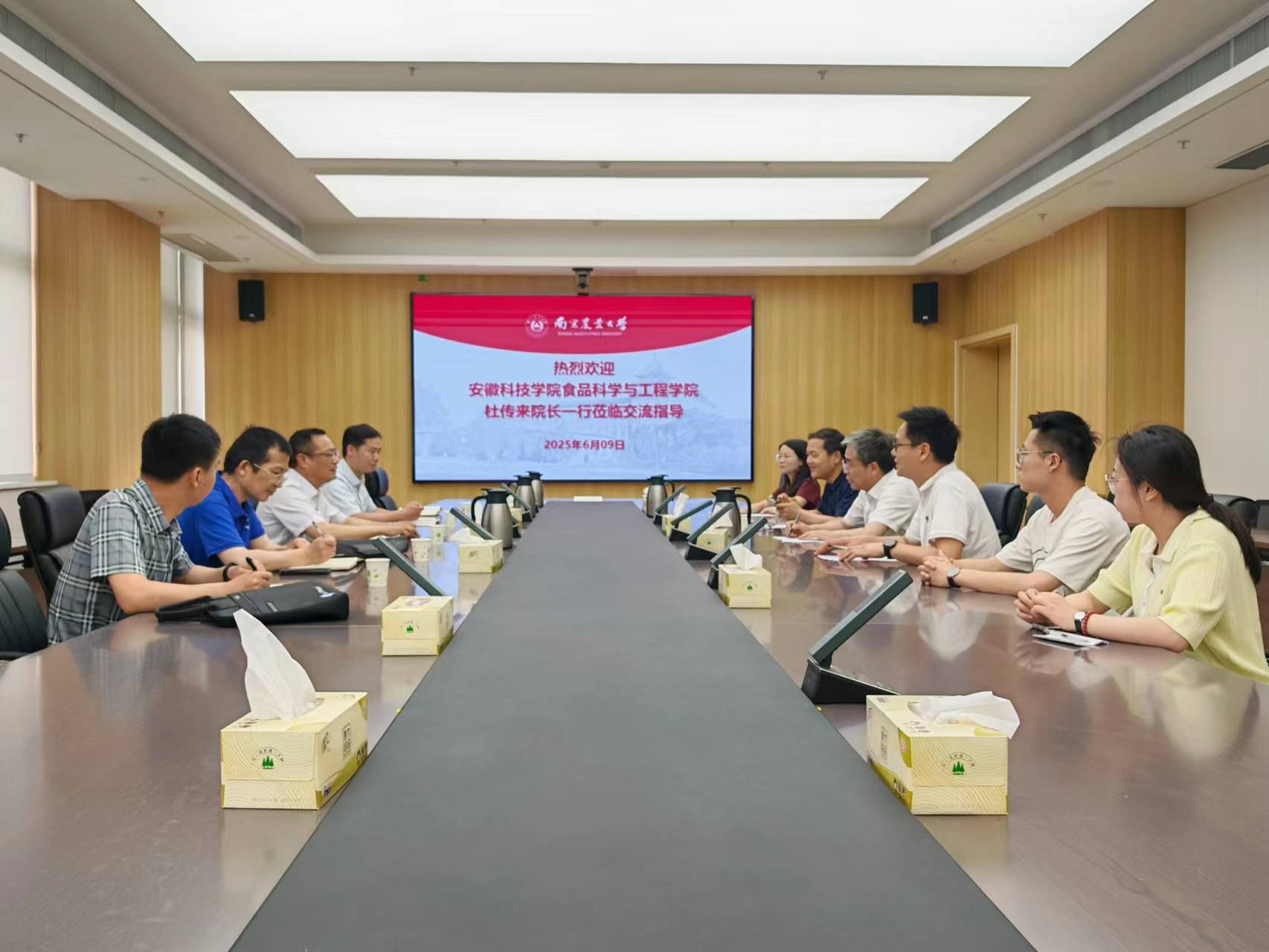 6月9日下午,食品科学与工程学院院长杜传来及专任教师一行6人赴南京农业大学食品科技学院进行了实地考察走访学习,洽谈产学研合作等事宜。